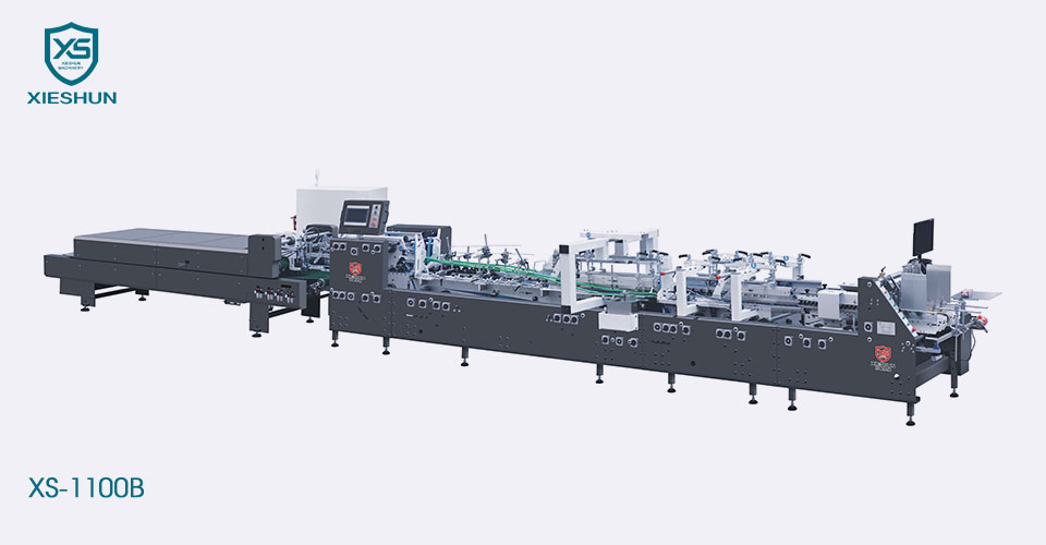 XS-1100B XIESHUN Crash Lock Abiadura Handiko Karpeta eta Gluer Makina automatikoa aproposa da blokeoaren beheko eta lerro zuzeneko kutxak ekoizteko modu azkar eta eraginkorrean, bereziki farmazia eta kosmetika industriarako. 200 eta 800 gsm bitarteko kartoiak hartzen ditu eta N/E eta F flauta motako kaxa korrugatuak prozesatzen ditu, abiadura handiko eta errendimendu fidagarria bermatuz.